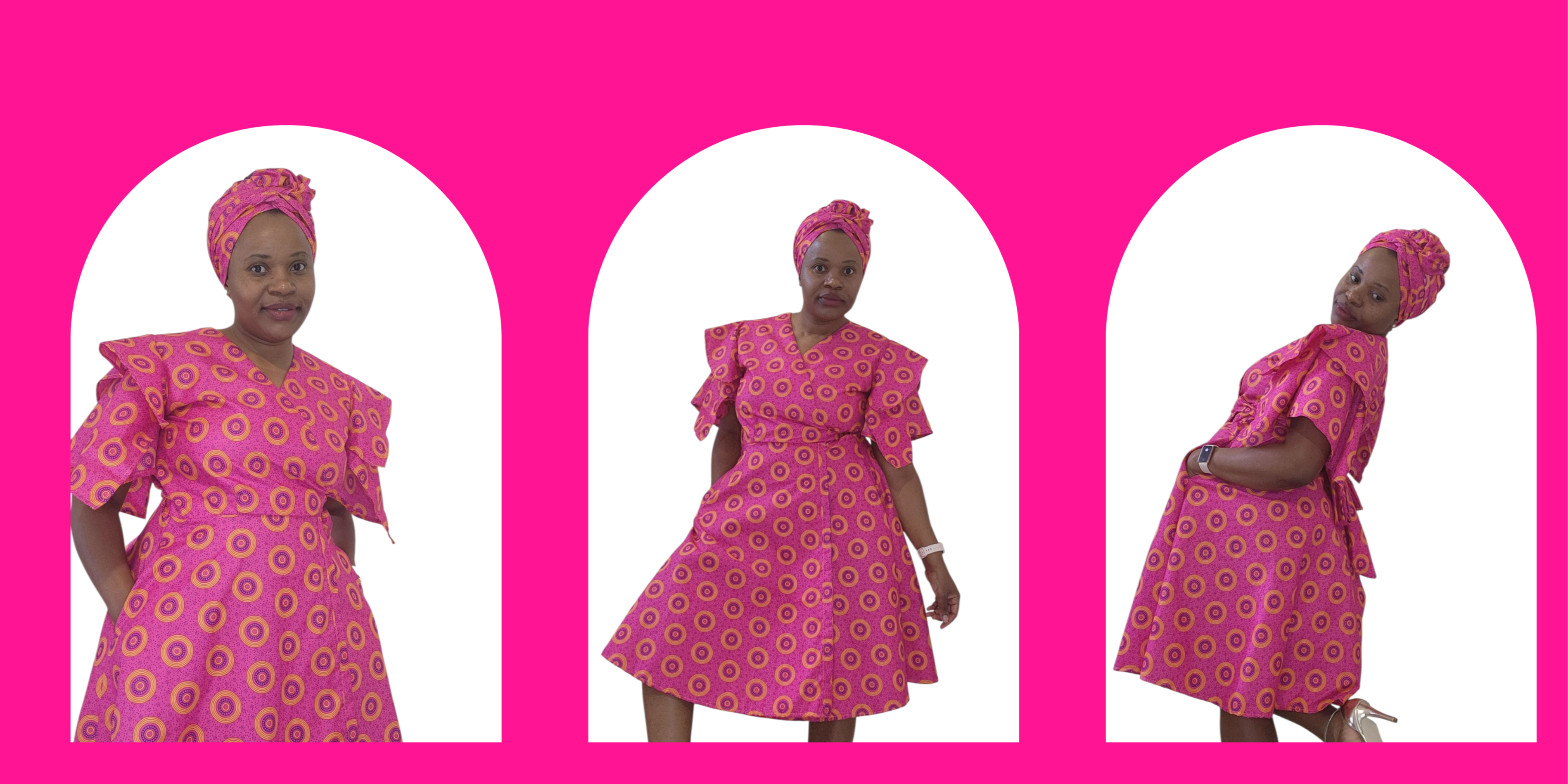 Frills Wrap Dress - Pink Shwe-Shwe Print (Knee length)